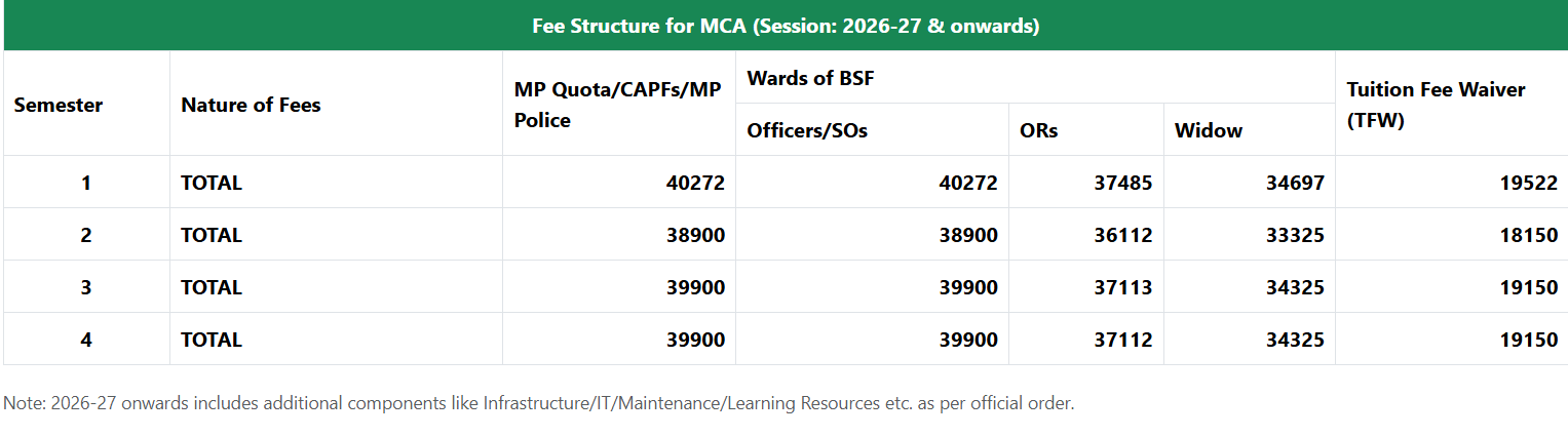 Earlier, MCA fees at RJIT was ₹ 93,536 (in 2025) for the entire course duration. This shows a fee increase of ₹ 65,436 over the year.