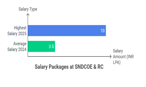 SNDCOE & RC 2025 placement data has not been published yet. The highest salary package offered during the SNDCOE & RC Nashik Placement 2024 was INR 10 LPA, while the average B.E. The package was INR 3.5 LPA. The top recruiters for SNDCOE & RC Placements are Mahindra, Cognizant, TCS, Wipro, Infosys, LG, and Accenture.