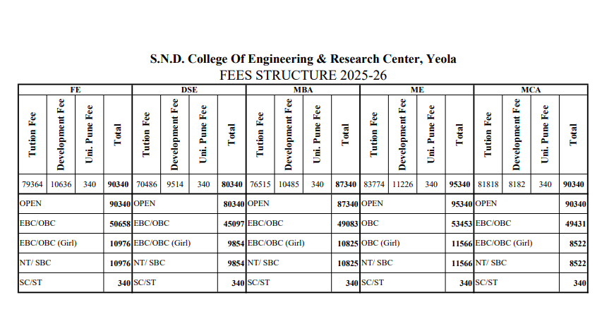 ME Design Engineering at SND College of Engineering and Research Centre Yeola Nashik is a 2 Years Degree. The course is offered On Campus as a Full Time program. SND College of Engineering and Research Centre Yeola Nashik ME Design Engineering Total Fees is INR 1,90,000 for 2025.