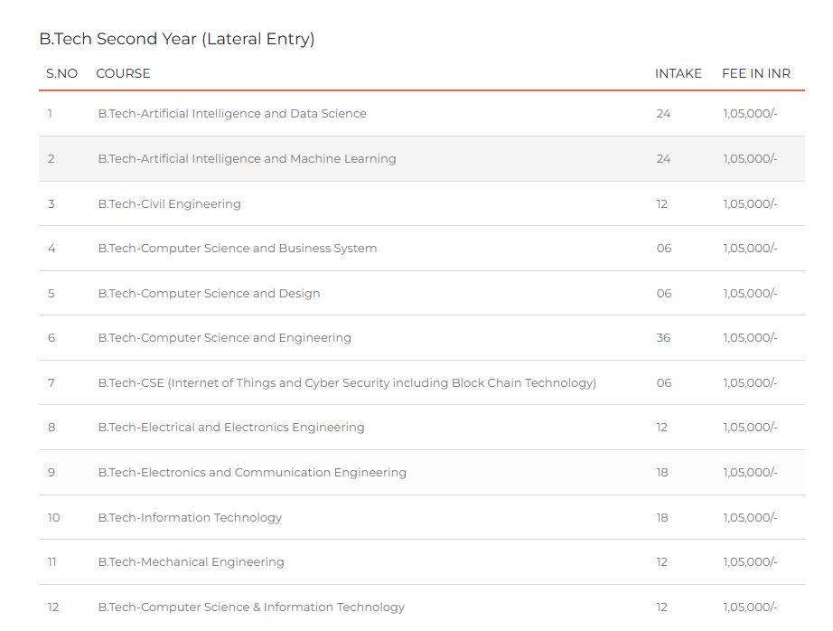 SRKR B.Tech {Lateral} Computer Science & Engineering is offered as 3 Years Full Time program, with total intake of 30 seats. The minimum eligibility criteria for B.Tech {Lateral} is 10+3. The total fees for SRKR B.Tech {Lateral} Computer Science & Engineering in 2025 is ₹ 3.15 Lakhs for the complete course duration. Earlier, the fees in 2024 - 2025 for B.Tech {Lateral} Computer Science & Engineering was ₹ 3.15 Lakhs.