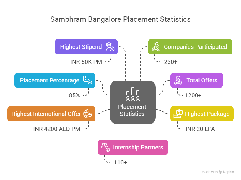 Purab Modi, a BTech Computer Science & Engineering student at Sambhram Bangalore claims that the placement here is average. Students can sit in placements after their 6th semester. A placement training is conducted in the 7th semester where the college asks for extra money just for the training purpose. Usually the small tech companies, mostly unknown, visit the college for placements. The average placement was INR 2.4 LPA in 2024.