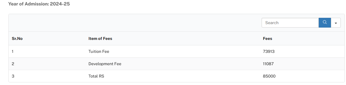 FEE STRUCTURE AS PER OFFICIAL WEBSITE