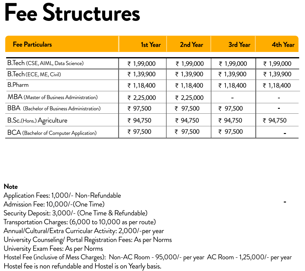 - This includes a total tuition fee of ₹ 2.93 Lakhs, Caution Fees of ₹ 3,000, Other Fees of ₹ 16,000.