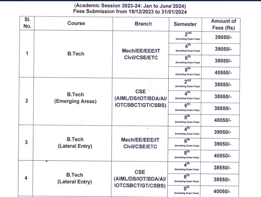 | Semester Wise Fees | 39050 | 39050 | 39050 | 39050 | 40550 | 40550 |