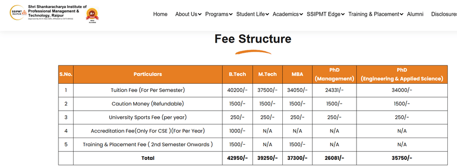 SSIPMT Ph.D Engineering fees 2025 is ₹ 1.28 Lakhs for the entire course duration.
