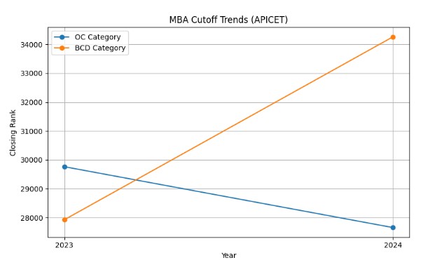 Below are the APICET cutoff trends for MBA admissions at SMCE Guntur. Data for AP EAMCET and GATE/PGECET cutoffs was not available.