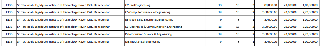 Sri Taralabalu Jagadguru Institute of Technology Haveri BE {Lateral} Civil Engineering Fee has not been released yet. For reference you can check the previous year academic fees in the section below.