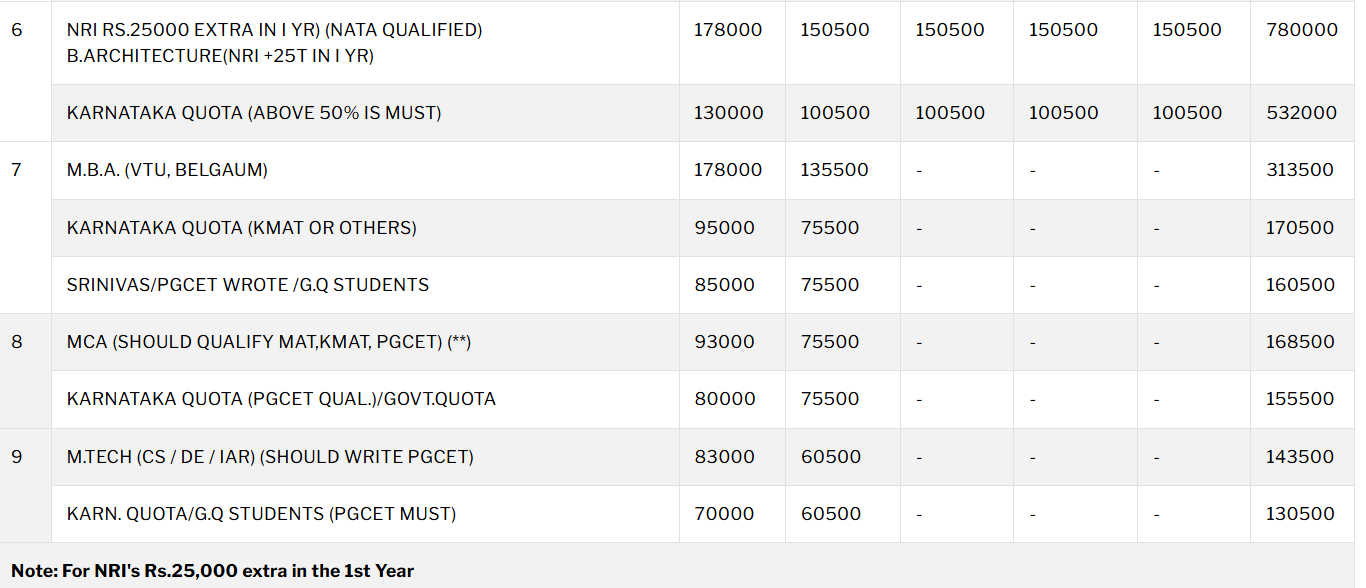 Srinivas Institute Of Technology Hostel Fee is ₹ 45,000 to 45,500.