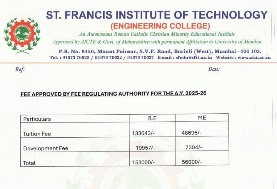 SFIT BE Computer Engineering Fees 2025