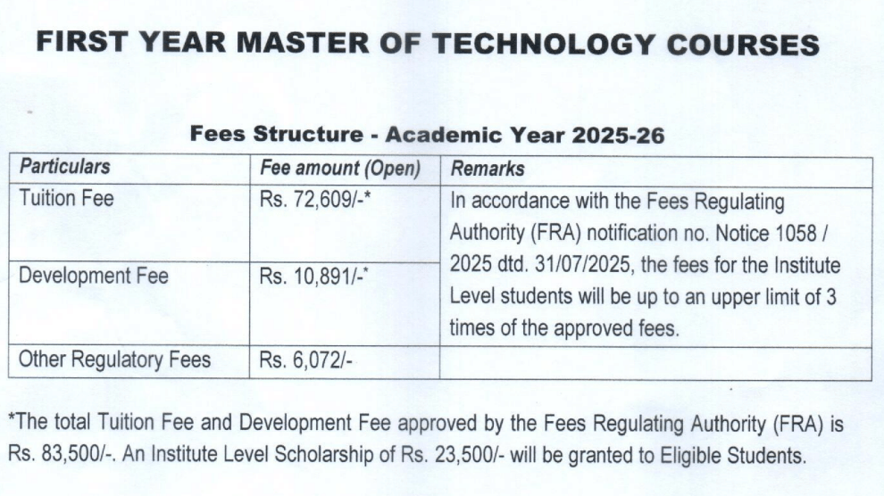 01 Sep, 2025 SJCEM M.Tech Fee structure 2025-26 has been released. The total academic fee is ₹ 1.79 Lakhs.