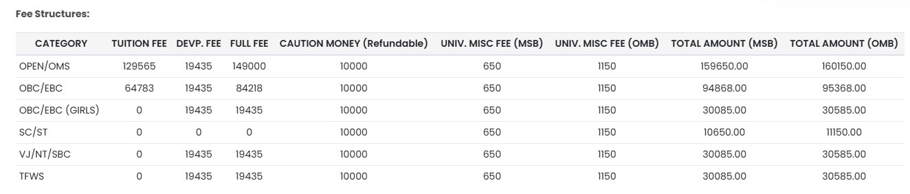 Placement rates for eligible students range from 60-98%. Over 200 companies visit annually, offering roles in software development and AI. Internships start in the 3rd year and often lead to job offers. The college offers scholarships and financial aid, with fees varying by category. General category fees are Rs. 1,00,000 to Rs. 1,40,000 annually, OBC-NCL students pay around Rs. 50,000, and SC/ST students pay Rs. 5,000 to Rs. 50,000. Scholarships for single girls, single parents, and other programs help reduce financial burdens, with no current fee hike policy.