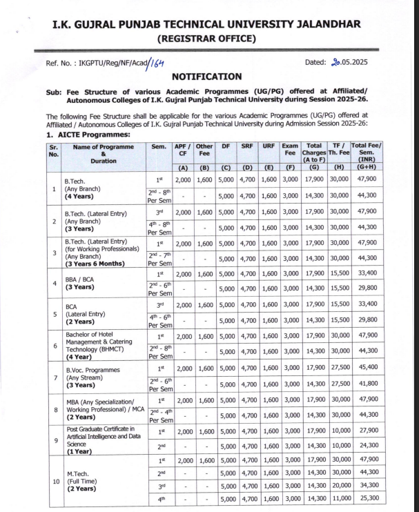 | Fee Type | Total Amount (INR) |