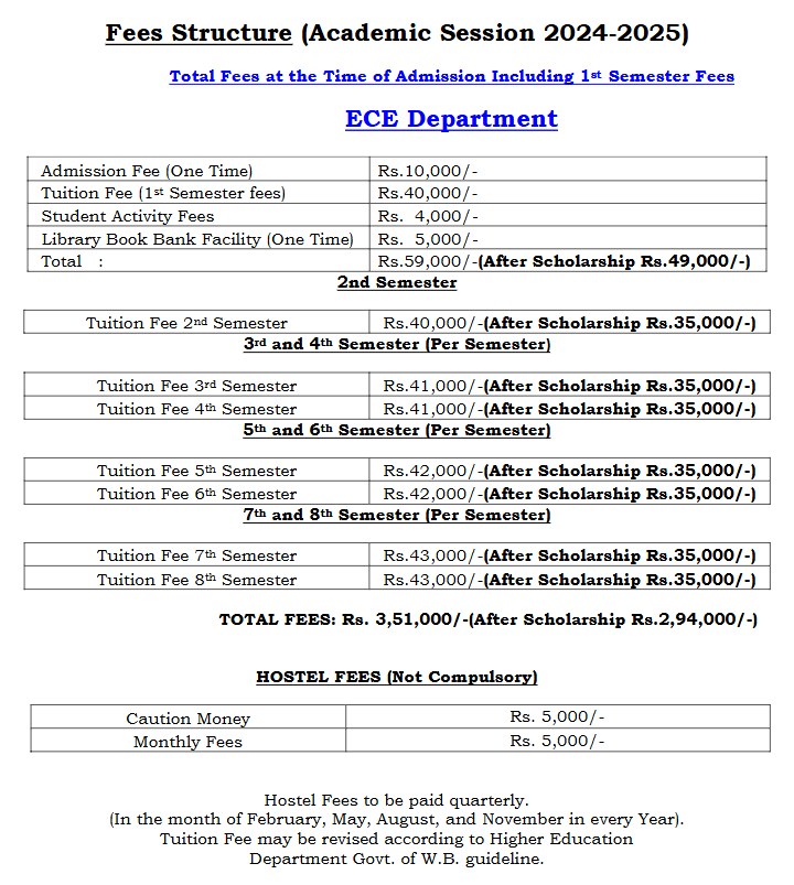 Swami Vivekananda Institute of Science and Technology Kolkata B.Tech {Lateral} Electronics & Communication Engineering Fee has not been released yet. For reference you can check the previous year academic fees in the section below.