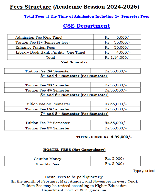 Swami Vivekananda Institute of Science and Technology Kolkata B.Tech {Lateral} Computer Science & Engineering Fees 2025