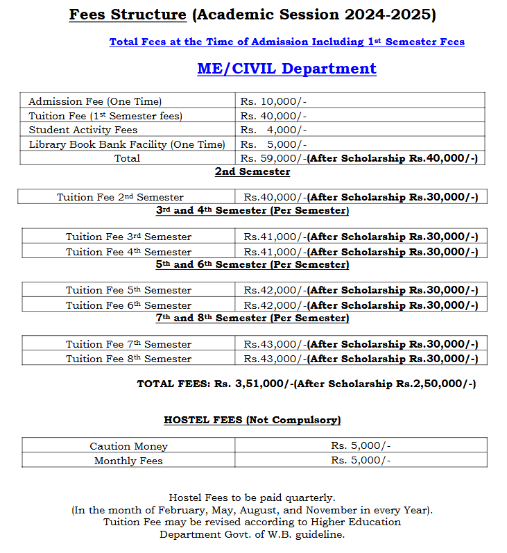The highest salary package available is 760,000 INR per annum, and the average package is 390,000 INR per annum. The college also offers several scholarships to support students financially, with the Swami Vivekanand Merit Cum Means scholarship being the most common. This scholarship awards 60,000 INR per annum to students who achieve an overall percentage above 60%.