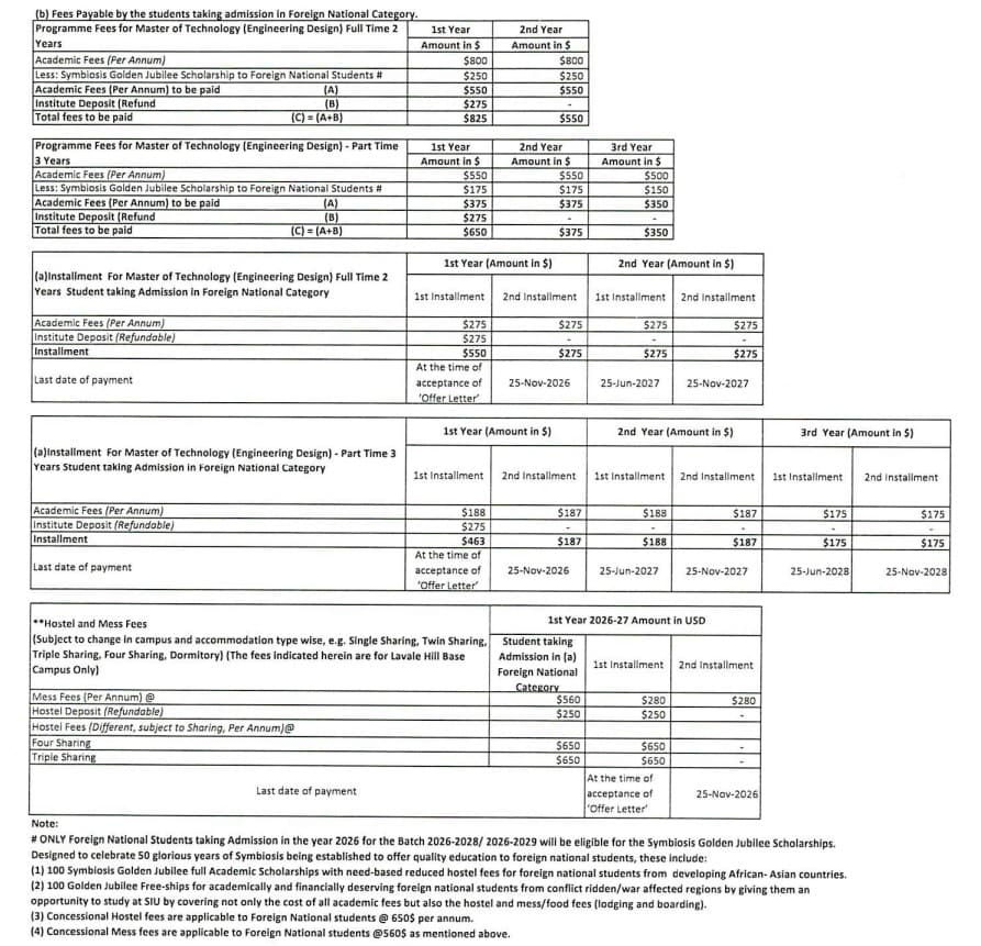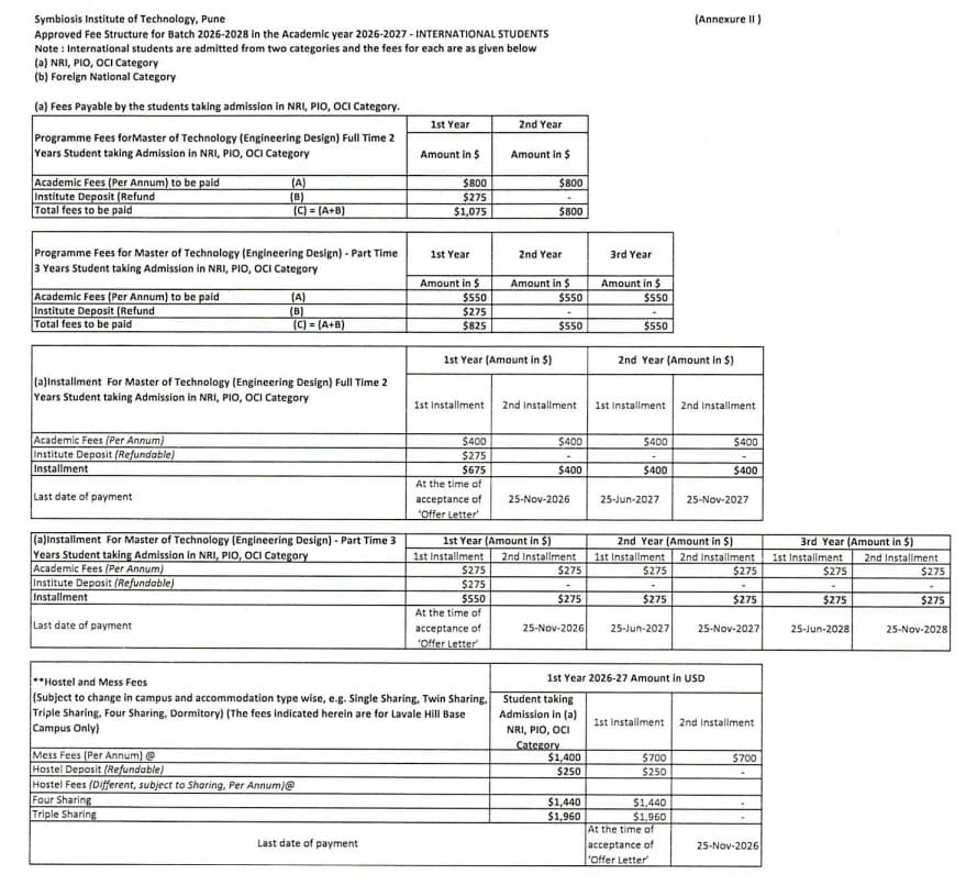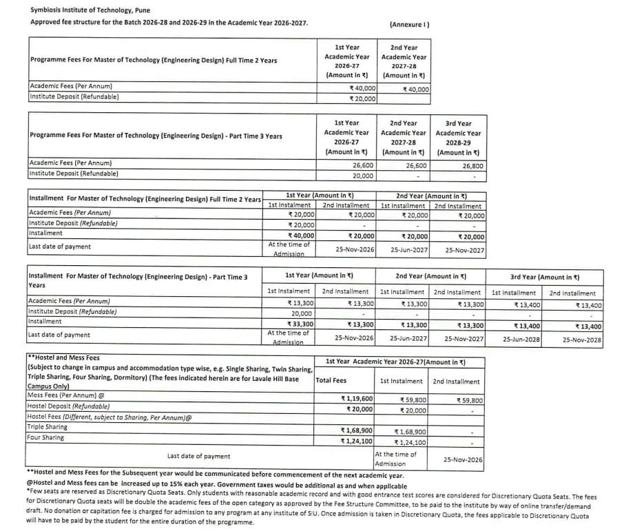 SIT Pune M.Tech Engineering Design fees 2026 is ₹ 99,800 for the entire course duration.