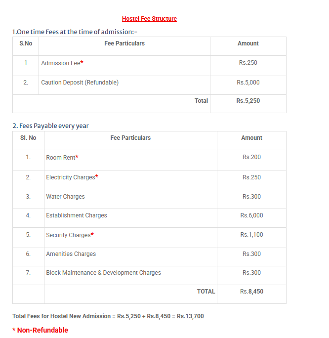Hostel infrastructure a good environment condition any time water available as purified water hostel accomptation food facility per day below 70 bellow rupees for healthy foods. Hostel are high aged tress and green nature sorrownding.