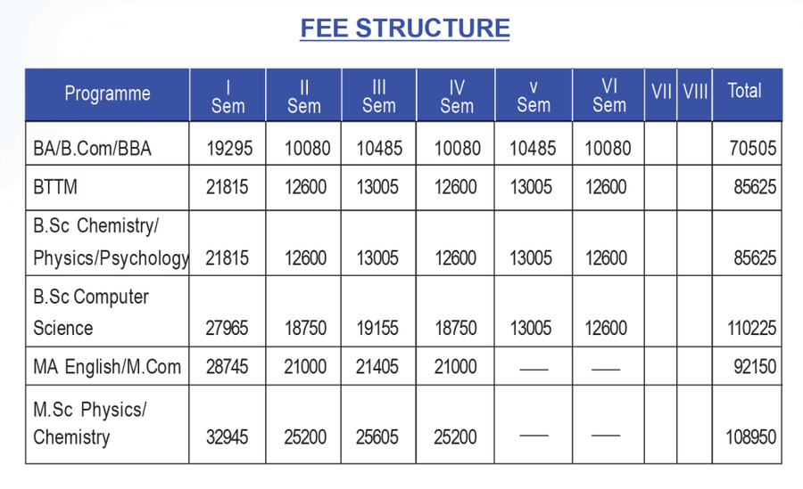 | Yearly Fees | ₹21815 | ₹12600 | ₹13005 | ₹12600 | ₹13005 | ₹12600 |