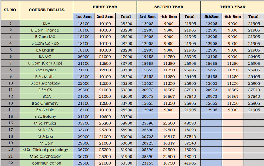 Ansar Womens College Thrissur B.Com Computer Applications is offered as 3 Years Full Time program. The minimum eligibility criteria for B.Com is 10+2. The total fees for Ansar Womens College Thrissur B.Com Computer Applications in 2025 is ₹ 87,510 for the complete course duration, which includes total tuition fees of ₹ 87,510. Earlier, the fees in 2023 - 2024 for B.Com Computer Applications was ₹ 58,200.