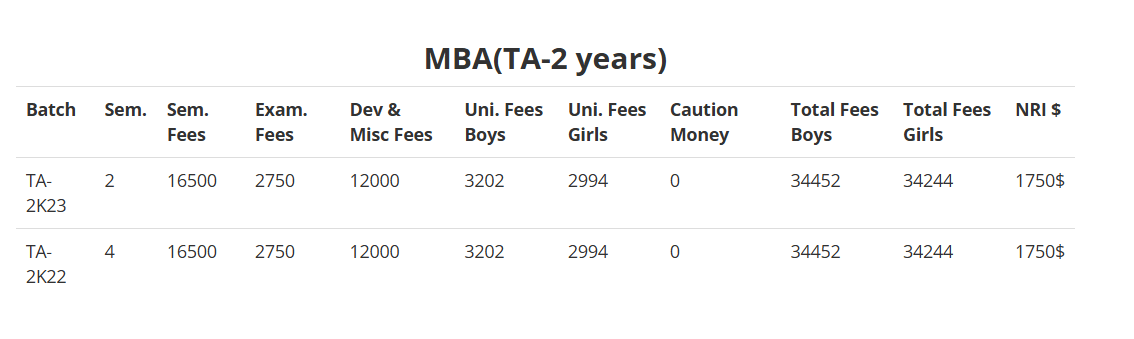 Each semester covers six subjects taught by a mix of in-house and visiting faculty who are experts in their fields. The college has a cost-effective fee structure due to partial government funding, with an annual program fee of approximately 65,000 rupees, excluding mess and canteen charges. The tourism course costs 70,000 rupees, while MBA courses in management and science are priced at 1 lakh rupees each. No extra admission fees are charged.