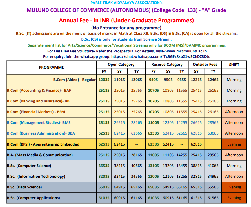 Earlier, BMMMC fees at MCC Mulund was ₹ 51,915 (in 2024) for the entire course duration. This shows a fee increase of ₹ 26,400 over the year.