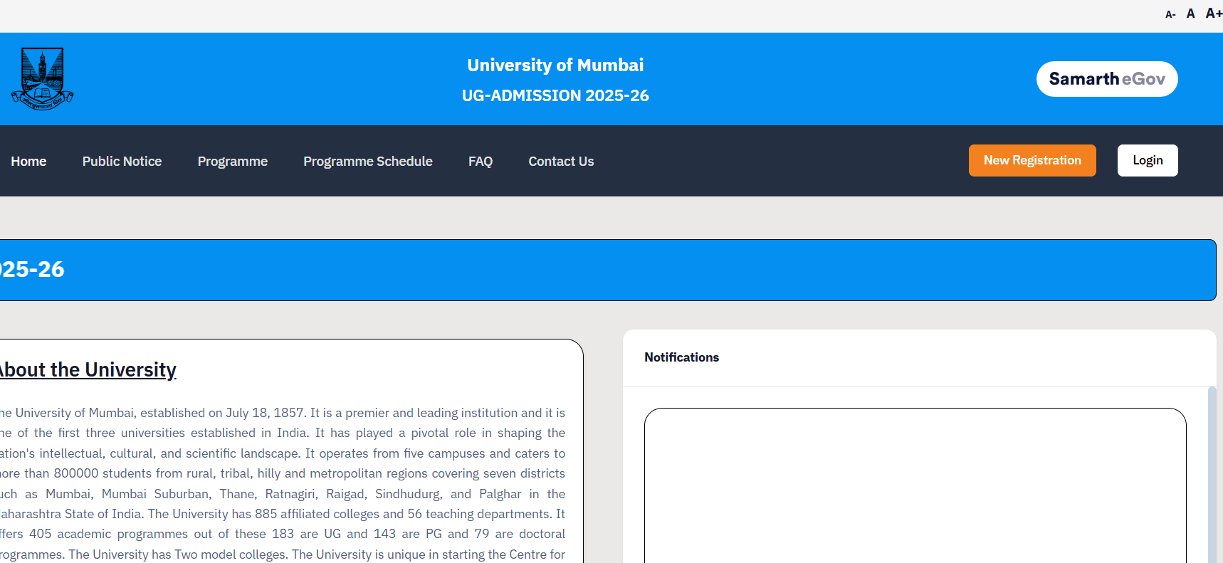 For admission to UG Programs, candidates need to register on the University of Mumbai's Samarth centralized admission portal.