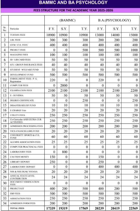 | Fees (2025 - 2026) | Year 1 (in INR) | Year 2 (in INR) | Year 3 (in INR) |