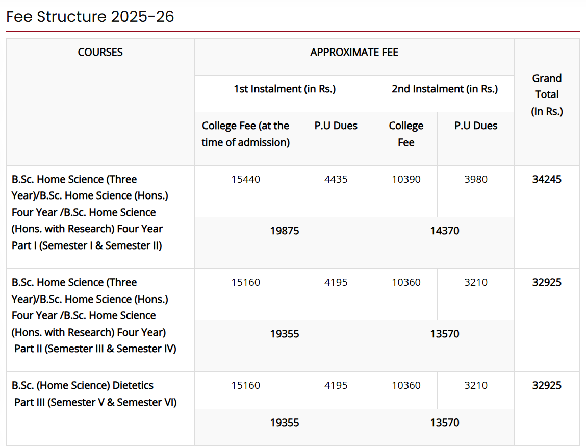 B.Sc Fashion Design at Government Home Science College Chandigarh is a 3 Years Degree. The course is offered On Campus as a Full Time program. Government Home Science College Chandigarh B.Sc Fashion Design First Year Fees is INR 34,245 for 2025.