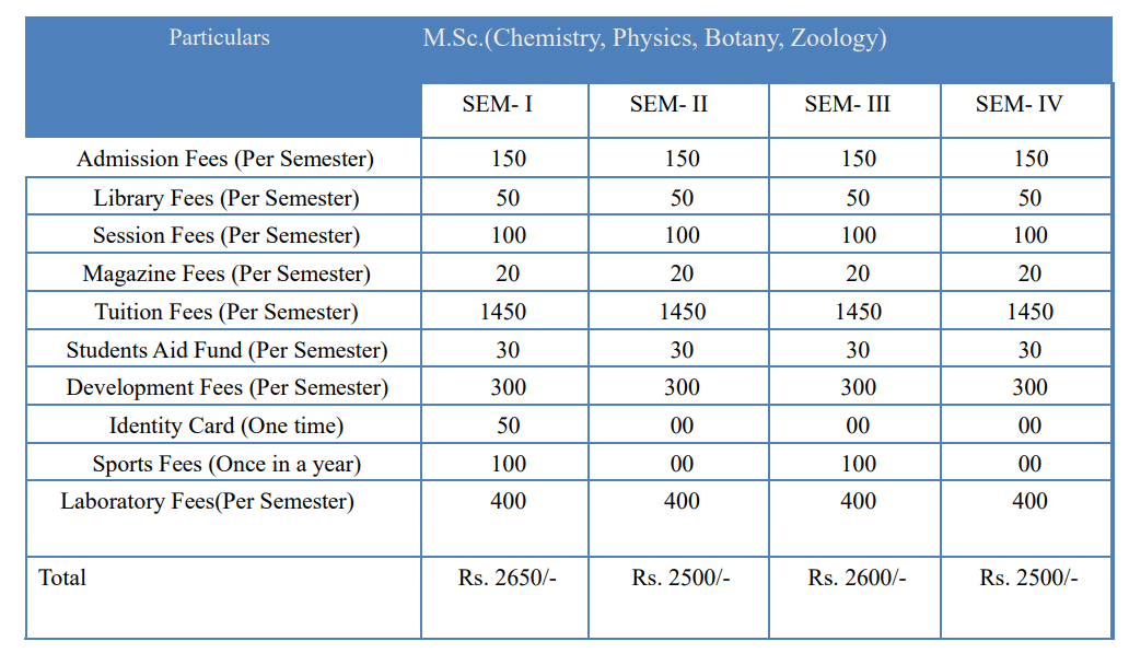 | Semester Wise Fees | ₹2250 | ₹2100 | ₹2200 | ₹2100 |