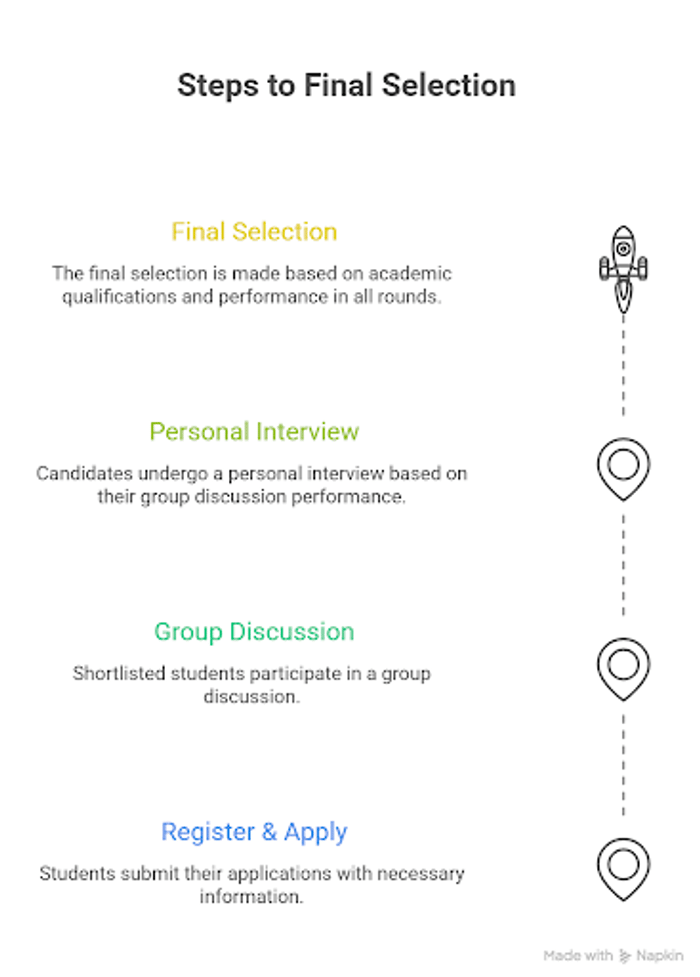 - Final Selection: The Final round selection is done based on the academic qualifications and scores in the entrance test, group discussion, and personal interview round.