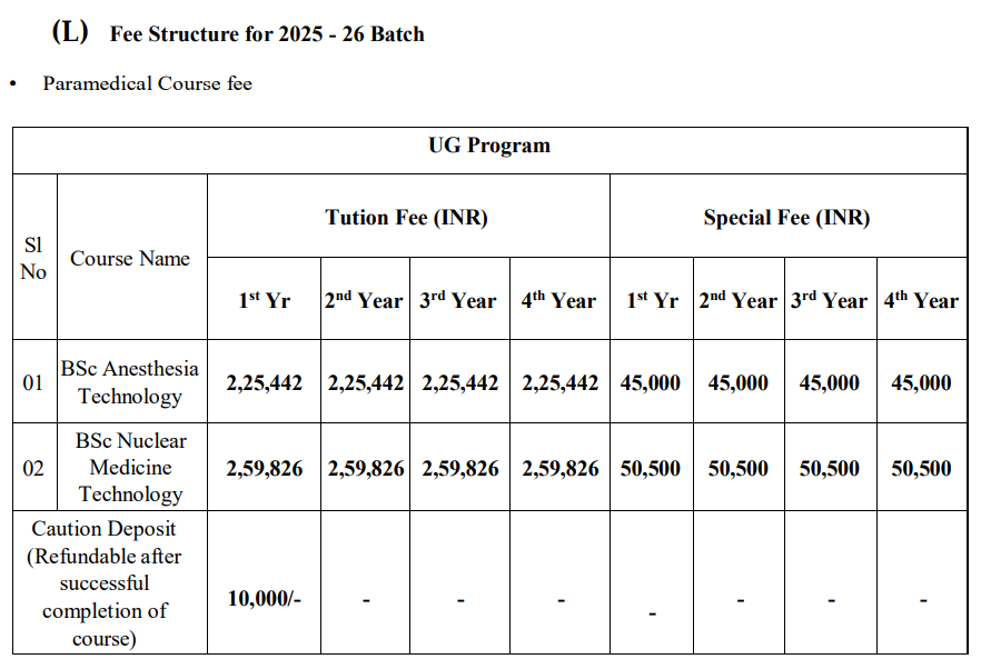 | Fees (2025 - 2026) | Year 1 (in INR) | Year 2 (in INR) | Year 3 (in INR) |