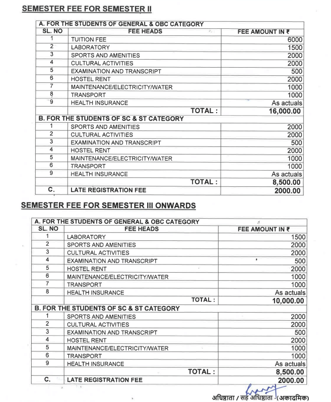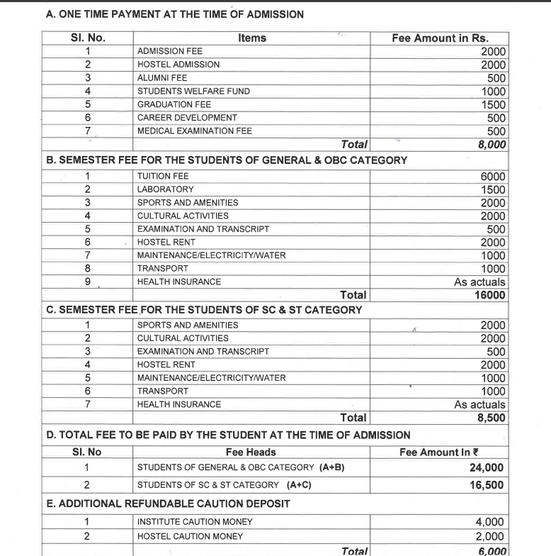 | Semester Wise Fees | ₹24000 | ₹14000 | ₹8000 | ₹8000 | ₹8000 | ₹8000 |