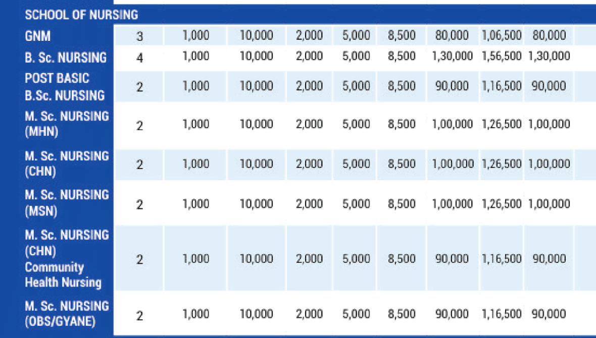 | Fees (2024 - 2025) | Year 1 (in INR) | Year 2 (in INR) | Year 3 (in INR) | Year 4 (in INR) |