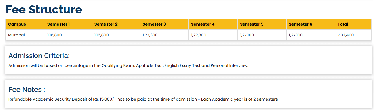 - Candidates need to pay ₹ 2.49 Lakhs in the first year.