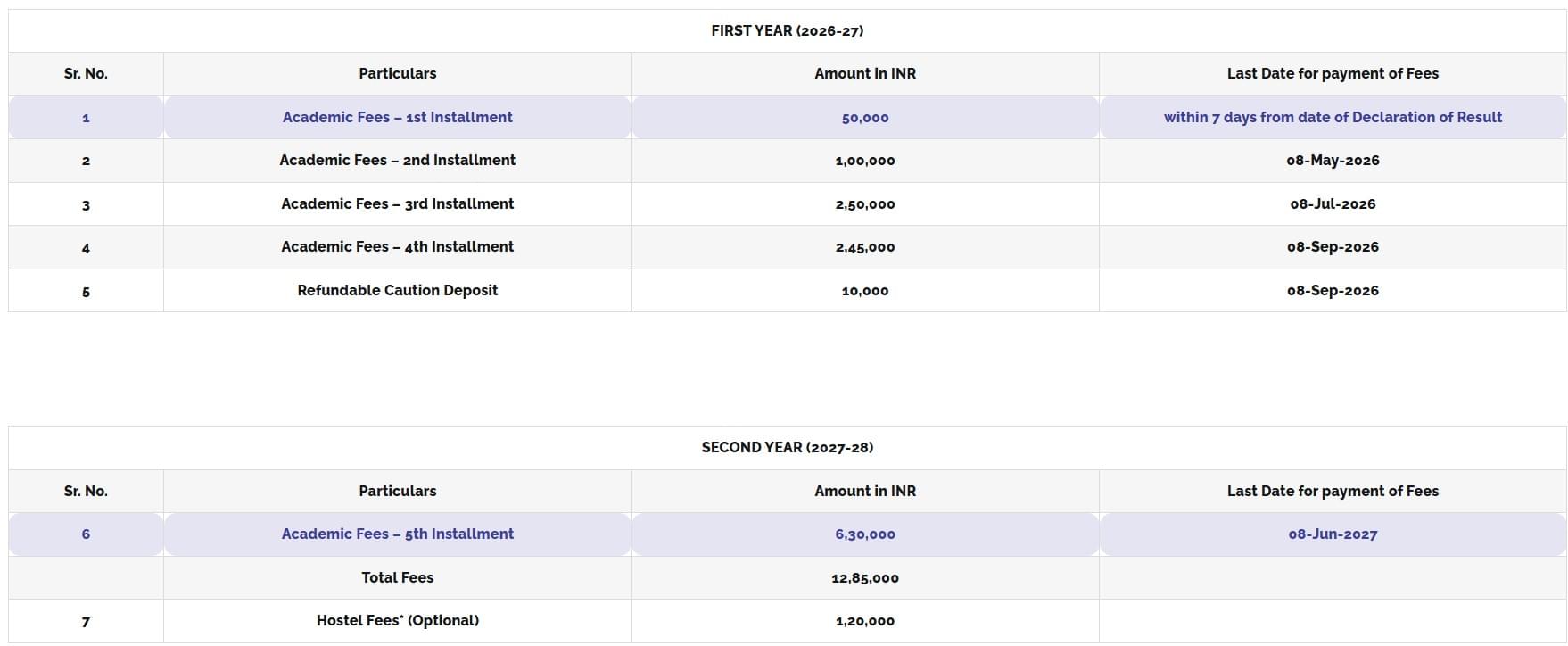 • Candidates need to pay ₹ 6.55 Lakhs in the first year.