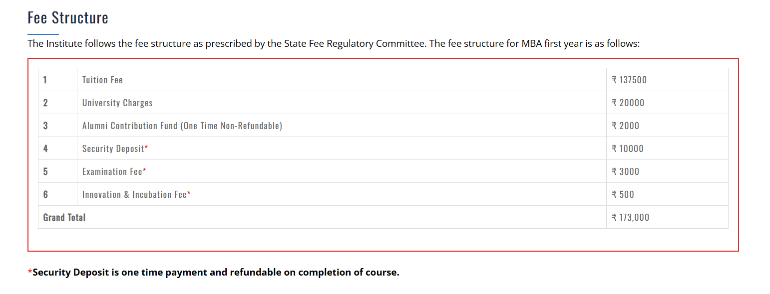 | Fee Type | Total Amount (INR) |
