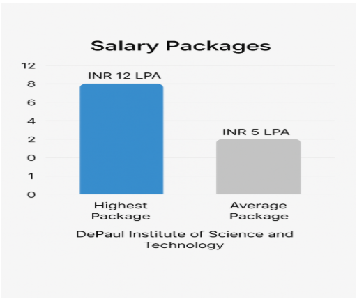 DePaul Institute of Science and Technology 2025 placements are yet to be conclusively out. However, based on our research, it has seen a trend over the years with an average placement offer of between INR 5 LPA and the maximum being about INR 12 LPA earlier. The college has a working cell to facilitate such placements and has a pool of recruiters, which includes well-known companies like TCS, Infosys, Wipro, HCL, Cognizant, ICICI, and Kotak Mahindra Bank. RBS (Royal Bank of Scotland), Oyo Rooms, and Axis Bank.