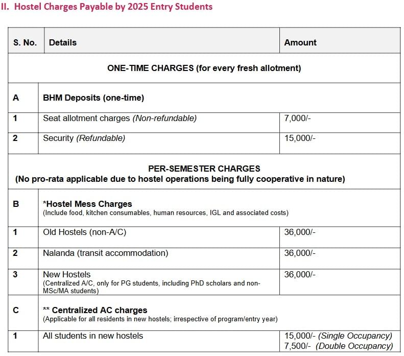 The hostels at IIT Delhi offer affordable accommodation with a range of facilities and amenities. The campus hosts 11 boy's hostels and 2 girl's hostels, with most rooms being either single or double occupancy, though some rooms accommodate up to four students due to limited availability. Rooms are equipped with WiFi, study desks, fans, and basic furniture, and each hostel has its own mess providing meals three times a day, including both vegetarian and non-vegetarian options.