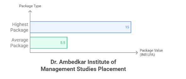 Dr. Ambedkar Institute of Management Studies Placement Report 2025 has not been released yet. According to our research, the highest package of INR 15 LPA, and the average package of INR 5.5 LPA. The recruiters are ABB, Accenture, EY, IBM, Wipro, Cognizant, Deloitte, KPMG, TCS, Tech Mahindra, Amazon, and more.