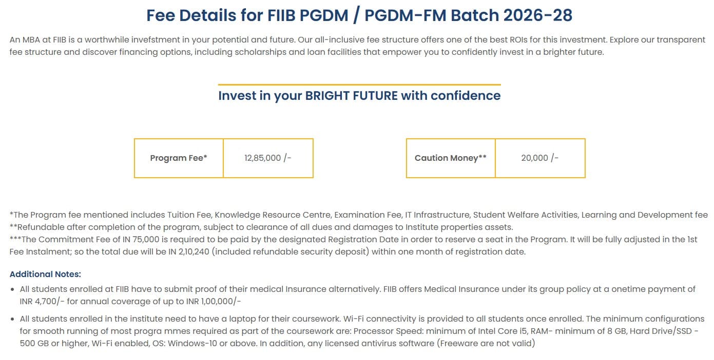 09 Dec, 2025 Fortune Institute of International Business New Delhi PGDM Fee structure 2026-28 has been released. The total academic fee is ₹ 13.85 Lakhs. Check details here.