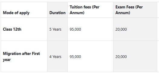 | Fees (2025 - 2026) | Year 1 (in INR) | Year 2 (in INR) | Year 3 (in INR) | Year 4 (in INR) | Year 5 (in INR) |
