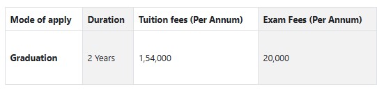 FEE STRUCTURE AS PER OFFICIAL WEBSITE