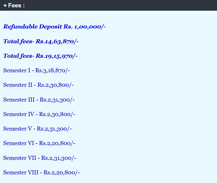 | Semester Wise Fees | ₹298870 | ₹252800 | ₹253300 | ₹252800 | ₹253300 | ₹252800 |