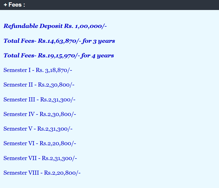 | Semester Wise Fees | ₹298870 | ₹252800 | ₹253300 | ₹252800 | ₹253300 | ₹252800 |