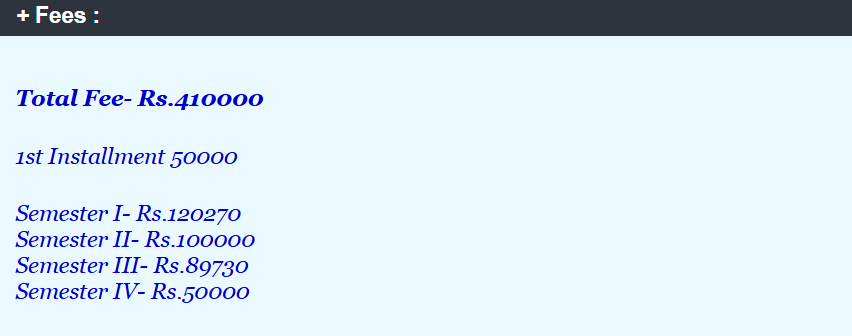 | Semester Wise Fees | ₹120207 | ₹100000 | ₹89730 | ₹50000 |