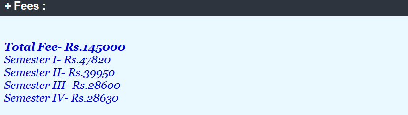 | Semester Wise Fees | ₹39300 | ₹31700 | ₹20620 | ₹20380 |