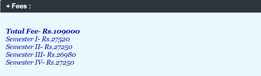 | Semester Wise Fees | ₹22500 | ₹12500 | ₹13620 | ₹11380 |