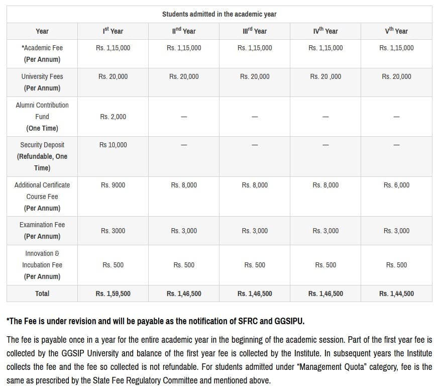 Students become eligible for placements from the 9th semester, supported by an active placement cell and events like job fairs. The curriculum includes mandatory internships, with students required to submit reports and participate in evaluations. The annual fee is Rs 1,50,000, with potential increases according to GGSIPU regulations. Scholarships are available for students based on merit and financial need.