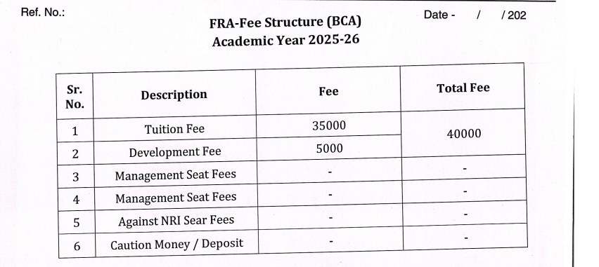 - The total fees for BCA is ₹ 1.2 Lakhs.