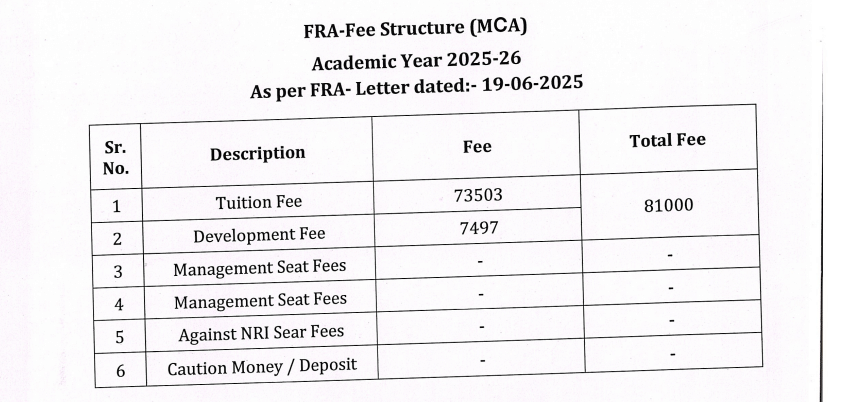MCA Fees at Godavari Institute of Management and Research Jalgaon covers a range of expenses, including tuition fee, course materials, and access to campus facilities.
